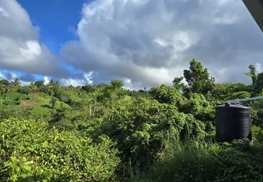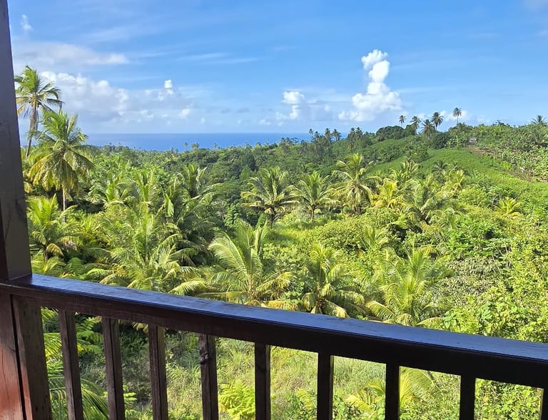 Tucked away in the vibrant, touristic village of Calibishie, this beautiful up-and-down home sits on 1.3 acres of lush tropical land, just 5.5 miles from the village center. The property offers breathtaking views of the sea and mountains, surrounded by tranquility and pure island beauty.